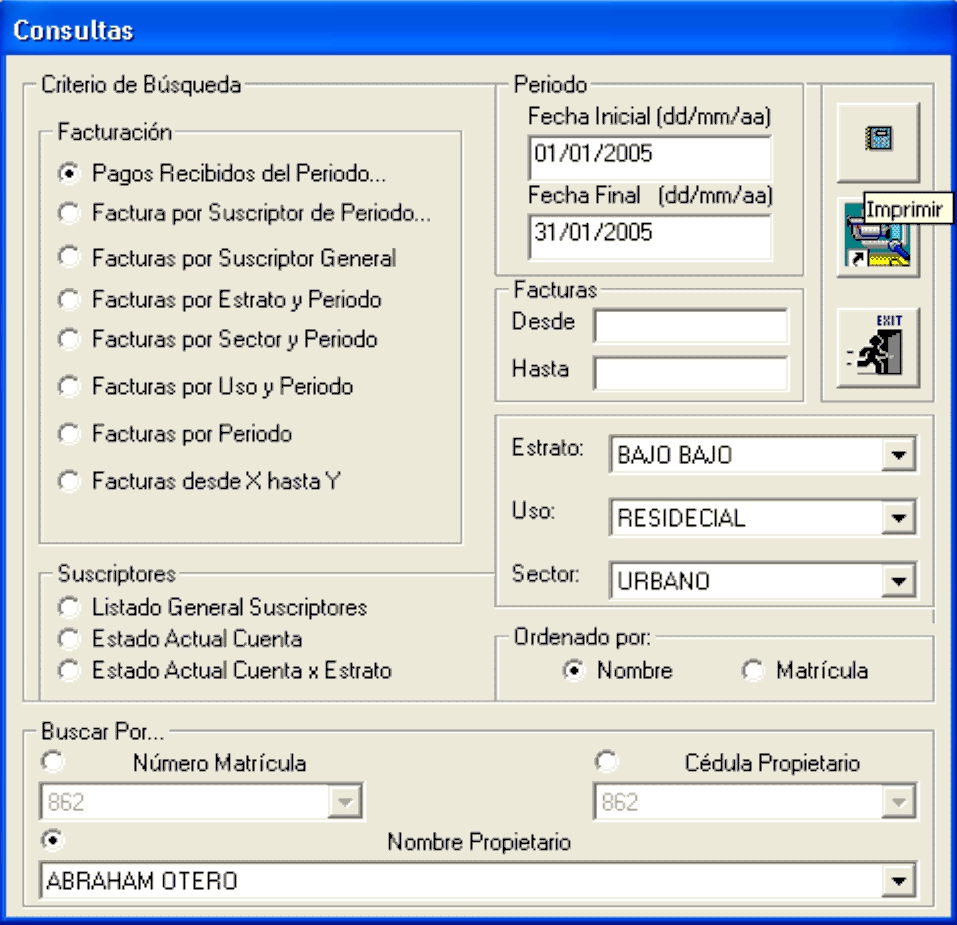 Es un sistema de Facturación de Acueducto que funciona desde el año 2000 en el acueducto del Municipio de Guaitarilla (Nariño). Permite la facturación por cargo fijo (método utilizado en los municipios pequeños) o por lectura de medidor.