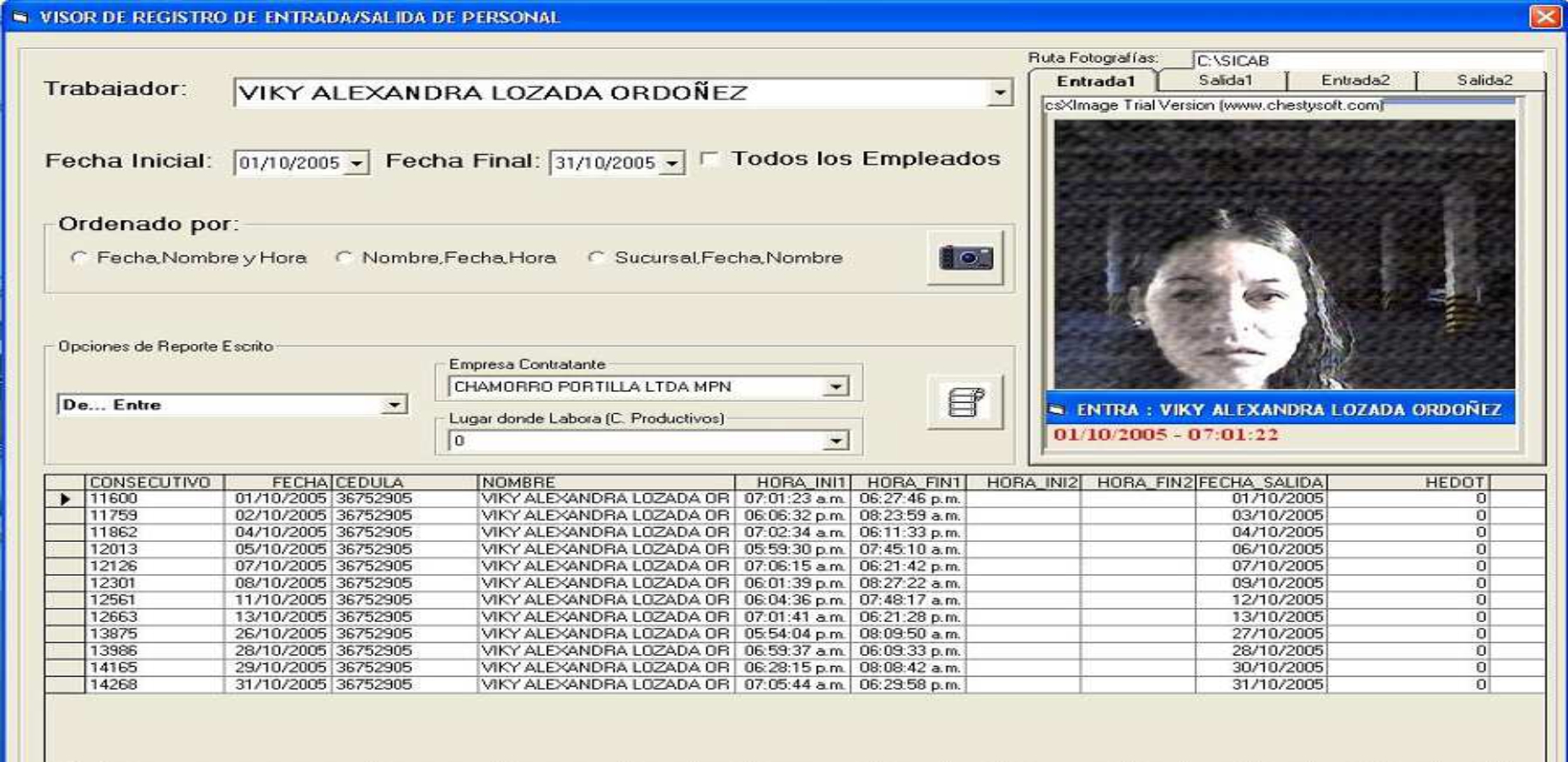 - En cualquier momento el encargado del control y manejo de personal puede consultar los registros del personal ya sea individual o grupalmente, verificando si la fotografía corresponde al propietario del carnet, esto sirve especialmente para evitar la suplantación, muy común práctica para evitar ser sorprendido llegando tarde.