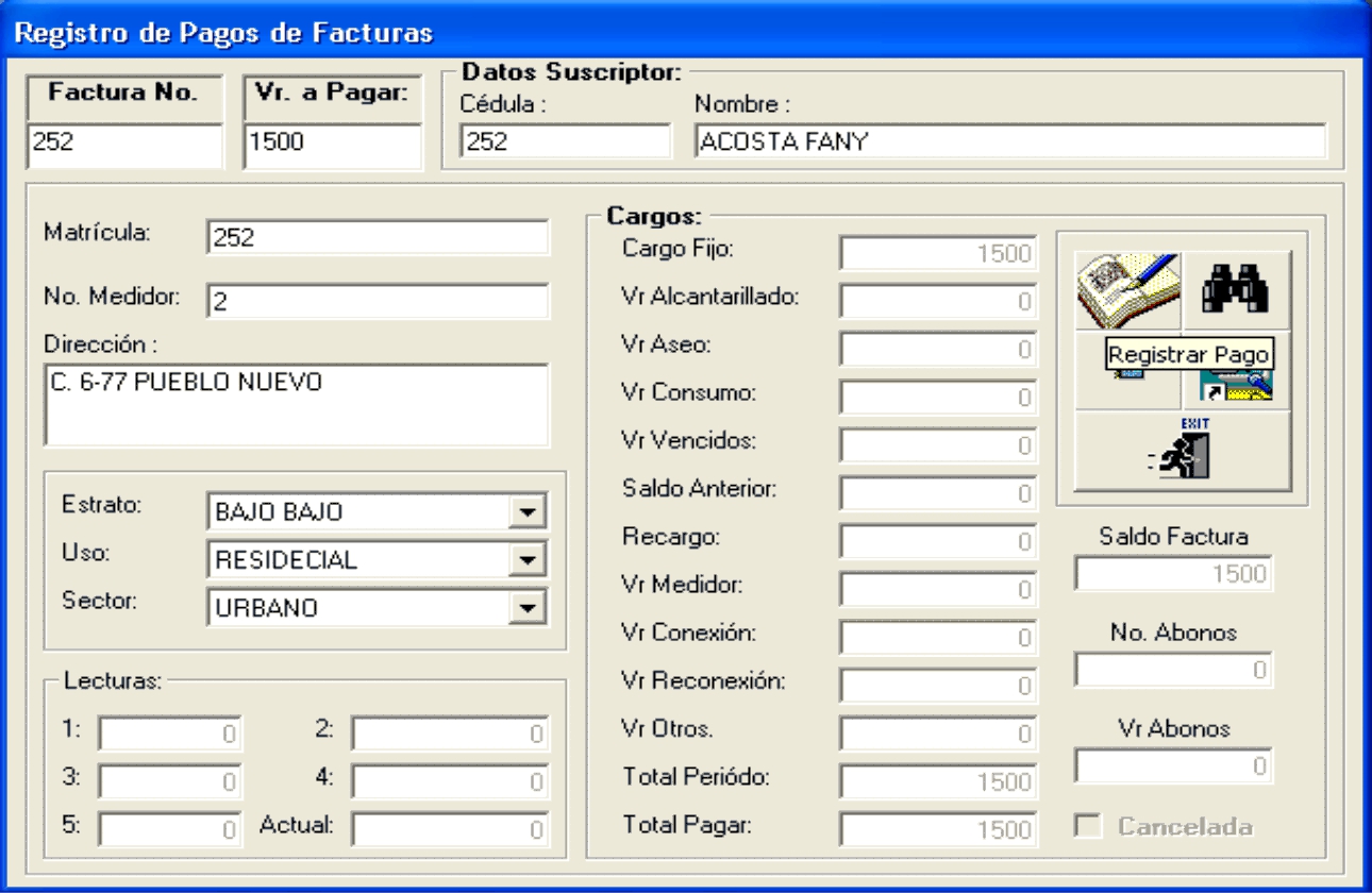 Es un sistema de Facturación de Acueducto que funciona desde el año 2000 en el acueducto del Municipio de Guaitarilla (Nariño). Permite la facturación por cargo fijo (método utilizado en los municipios pequeños) o por lectura de medidor.