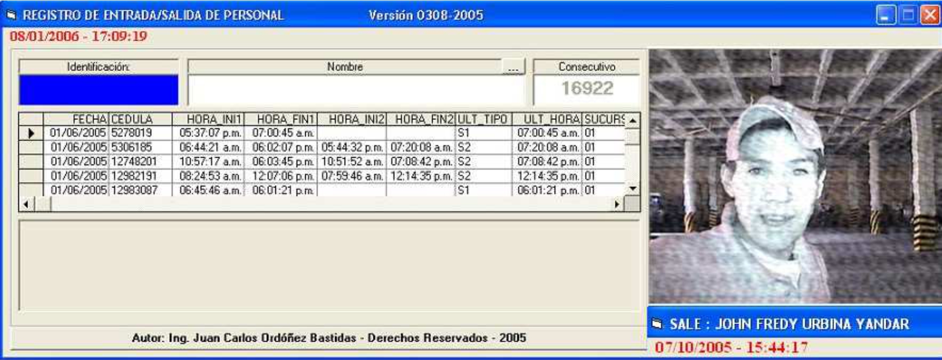 Es un Sistema de Control de Asistencia de Personal que valiéndose de un computador conectado a una cámara digital y un escáner de códigos de Barras permite que: